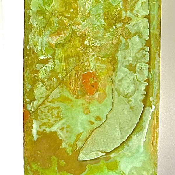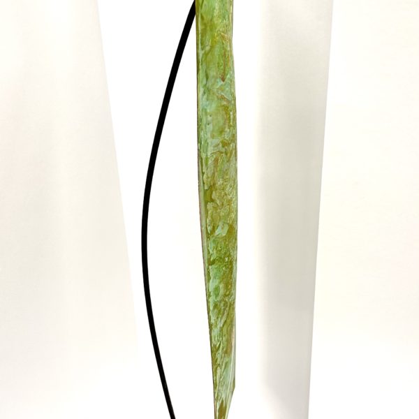 The Robert Lee Morris Verdigris Sculpture #119, Tall Rectangular Sail is a powerful artwork for the home or office. Verdigris is the green color that comes from oxidation of brass or copper, and Morris has been a pioneer in using that color for both his jewelry and sculptures since 1974. This spectacular piece would make a strong visual accent for any space, tall, bold and commanding. There is also available a golden brass version as a mate for this piece if wanted, as per photo in gallery. The height is 28.5″ and width 4″, very sleek.