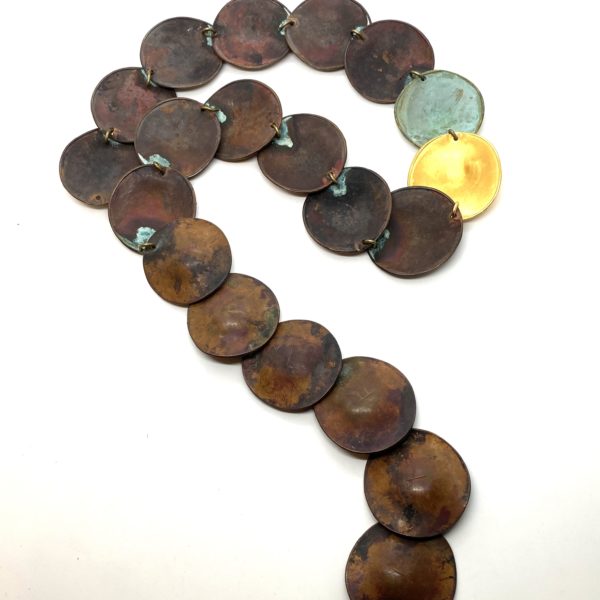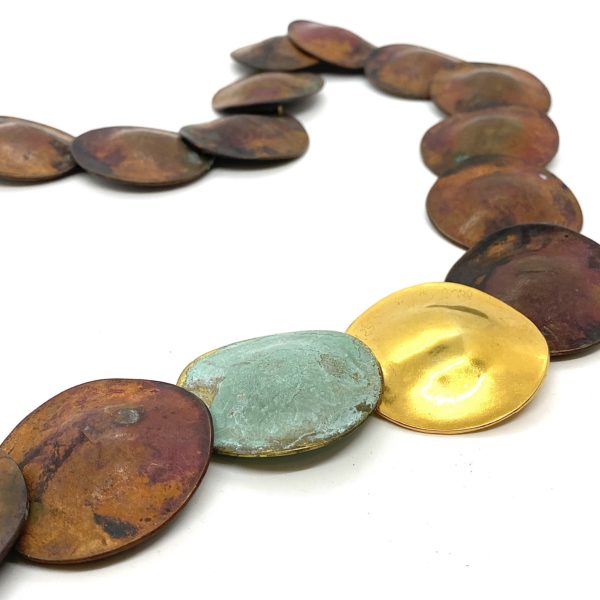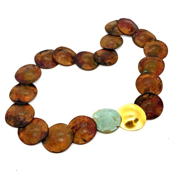 Robert Lee Morris Copper, Gold, and Verdigris Large Disc Necklace