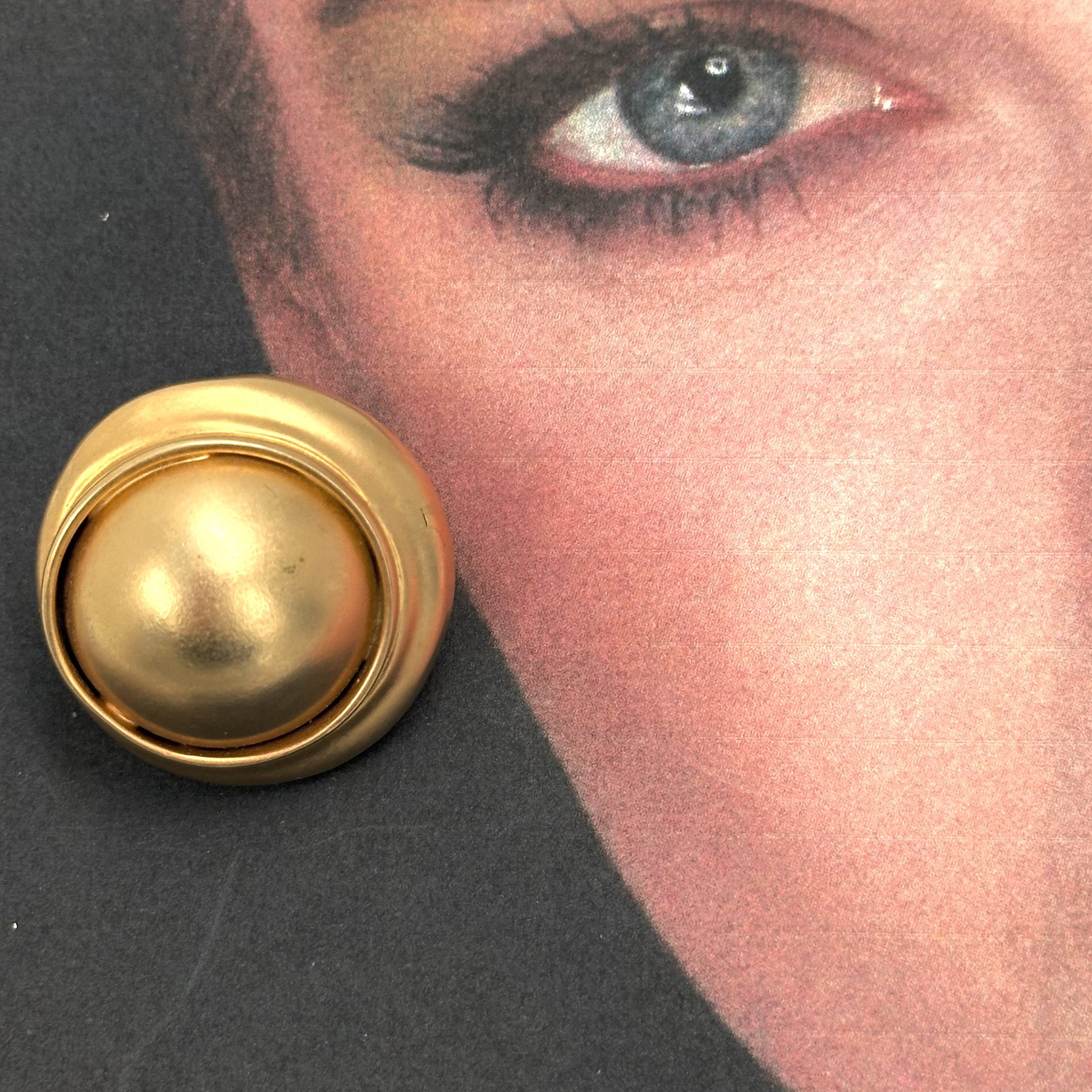 This dynamic pair of earrings Robert Lee Morris Wrapped Ball Earrings for Donna Kara, were created for the early Donna period, 1985-87. Clip ons and much lighter than they appear, these are dramatic glamour earrings. Gold plated brass