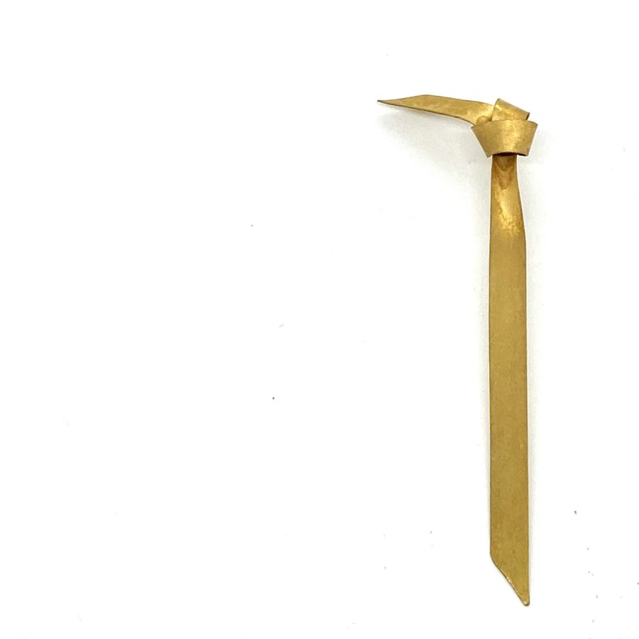 A very rare and special had made earring by Ted is this knot design. Like a golden ribbon that has been a single gold plated earring, a must for any Muehling collector. Tied into a simple knot and place on ones ear. Such a beautiful idea, and it still surprises me why this design has not been copied and distributed worldwide.